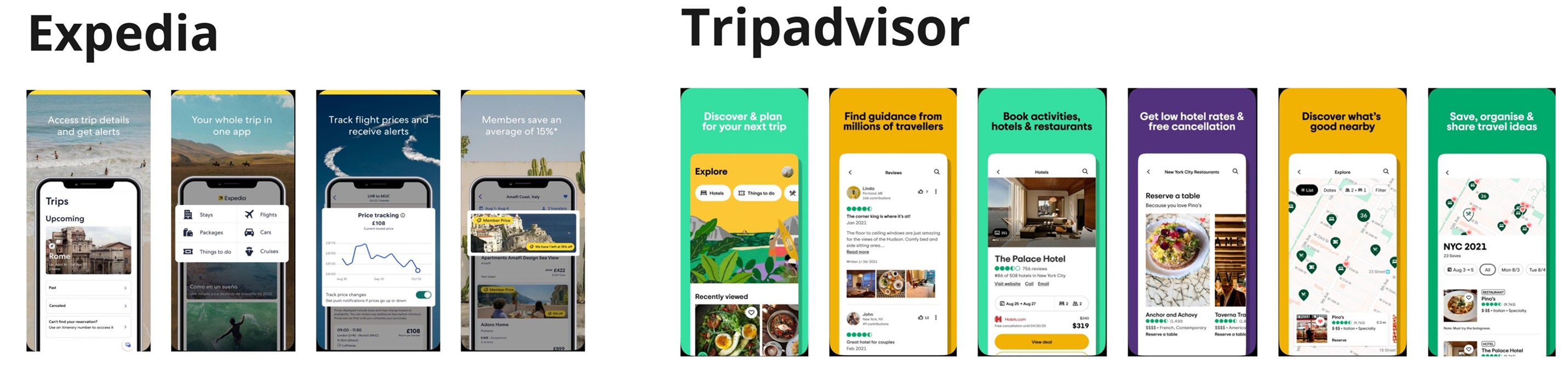 Looking at Competitor travel apps were equally as helpful as looking at Airbnb itself. It allowed me to see all the different features that were successful, and not so successful. As my app intended to help users find locations for sights and challenges, I was keen to see how other competitors used map features and promoted businesses local to the area.