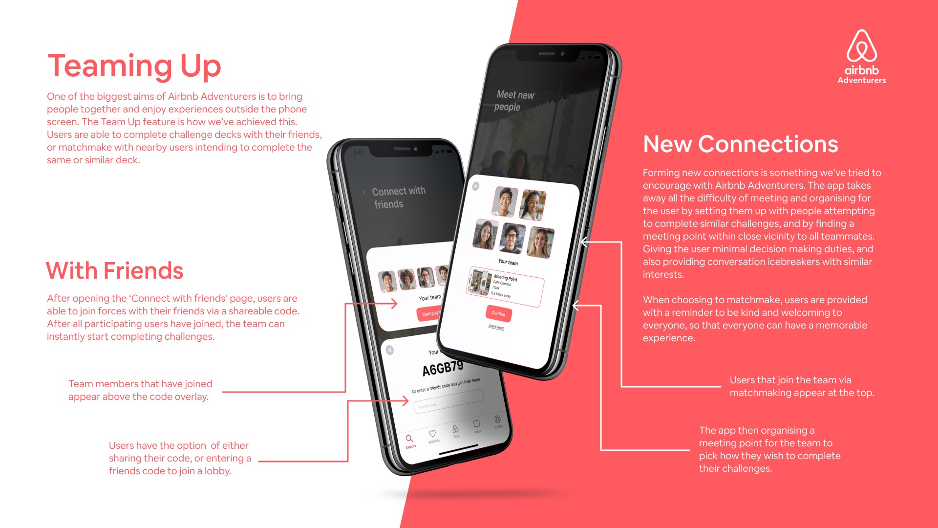 Airbnb Adventurers helps people create meaningful moments and form new connections with others worldwide. Users can team up with nearby travellers or locals to complete location specific challenges together that encourage teamwork, conversation and most importantly, fun.
