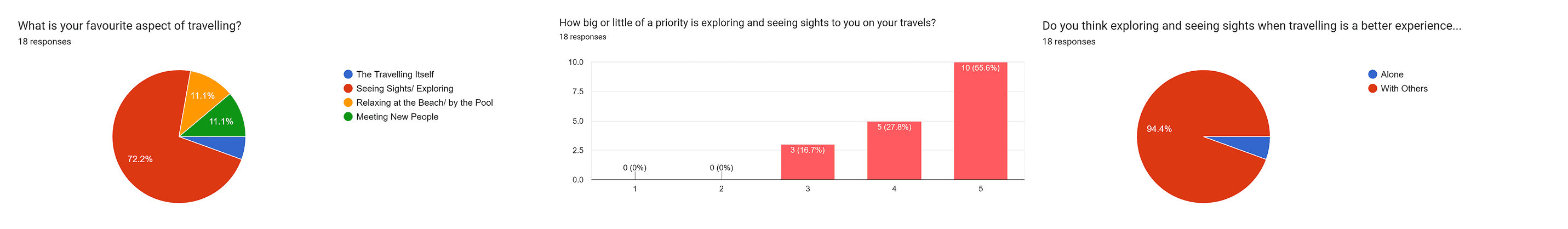 I completed my initial research by asking a Survey to my target demographic. This was to figure out their travel habits as well as desires and priorities they have when travelling. Exploration and making lasting memories with people became the clearest standouts of these priorities and an app that made both of these easier to achieve and more worthwhile received largely positive feedback. The ability to save money where possible was the next biggest priority and was one I intended to try and implement in my product.